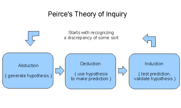A great American philosopher of the late 19th century, Charles Peirce, discovered a neat system to explain how the three mode of inference work together to drive the process of scientific inquiry. The Wikipedia has a good description of Peirce's Theory of Inquiry.
