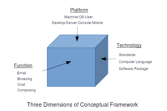 Three dimension of conceptual ( or analytic ) framework implied by PyWacket requirements.
